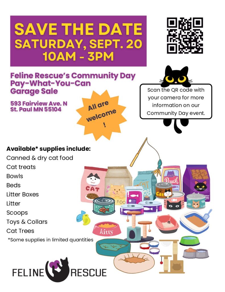 Feline Rescue’s Community Day & Pay-What-You-Can Garage Sale